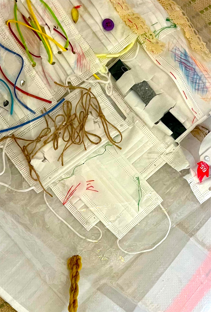 Früher war es schwierig, Masken zu bekommen, aber heute brauchen wir sie nicht mehr. Ich habe also viel nachgedacht, als ich die aufgestapelten Masken betrachtete, die heute alle Abfall sind.